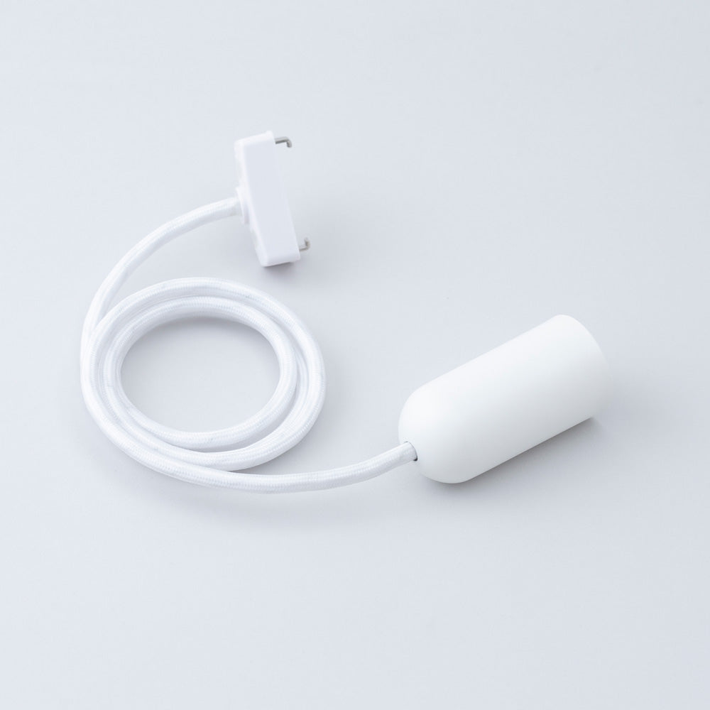 A ceiling hanging lighting fixture with a matte texture in black and white that harmonizes with the Lamp/Lamp LED. The plug directly attached to the ceiling and the round cord are matched to the white and black colors of the main body, respectively, and the length of the cord is 85 cm. A converter will be needed for use in the US.