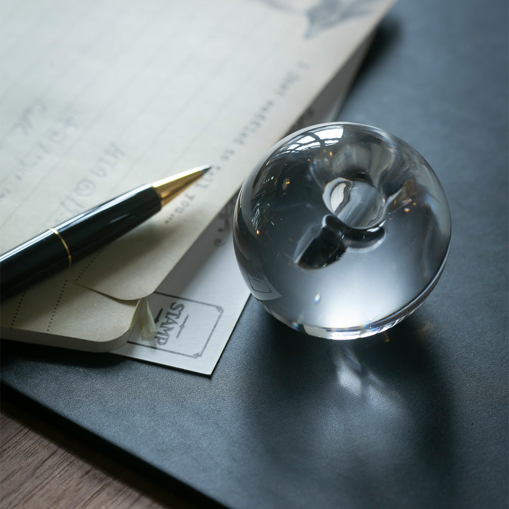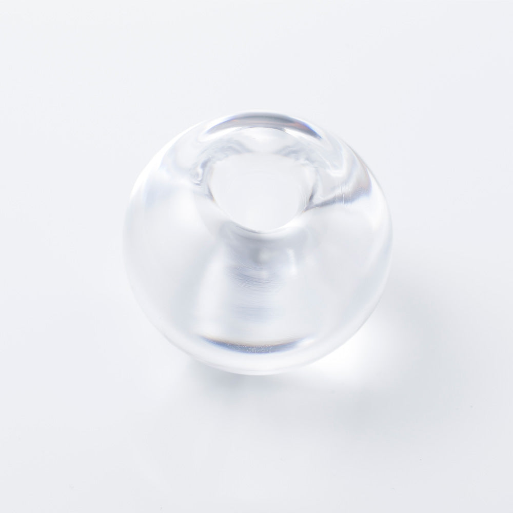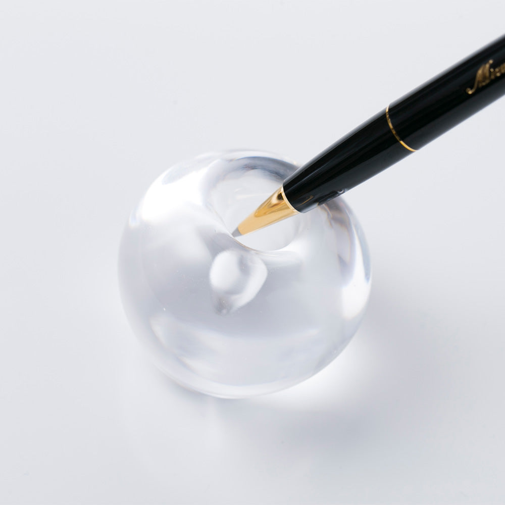 Mizu-tama is made by skilled glass artisans using a technique called "chu-buki" or "air-blowing." Mizutama means "dewdrop" in Japanese. The shape of each piece is slightly different. Each piece of glass, being handmade,, is different in terms of bubbles, shape, depth, and angle of entry into the inside, but each one allows you to enjoy the delicate beauty of glass. There transparent glass mass, like water, has a unique presence, reflecting the surrounding scenery.