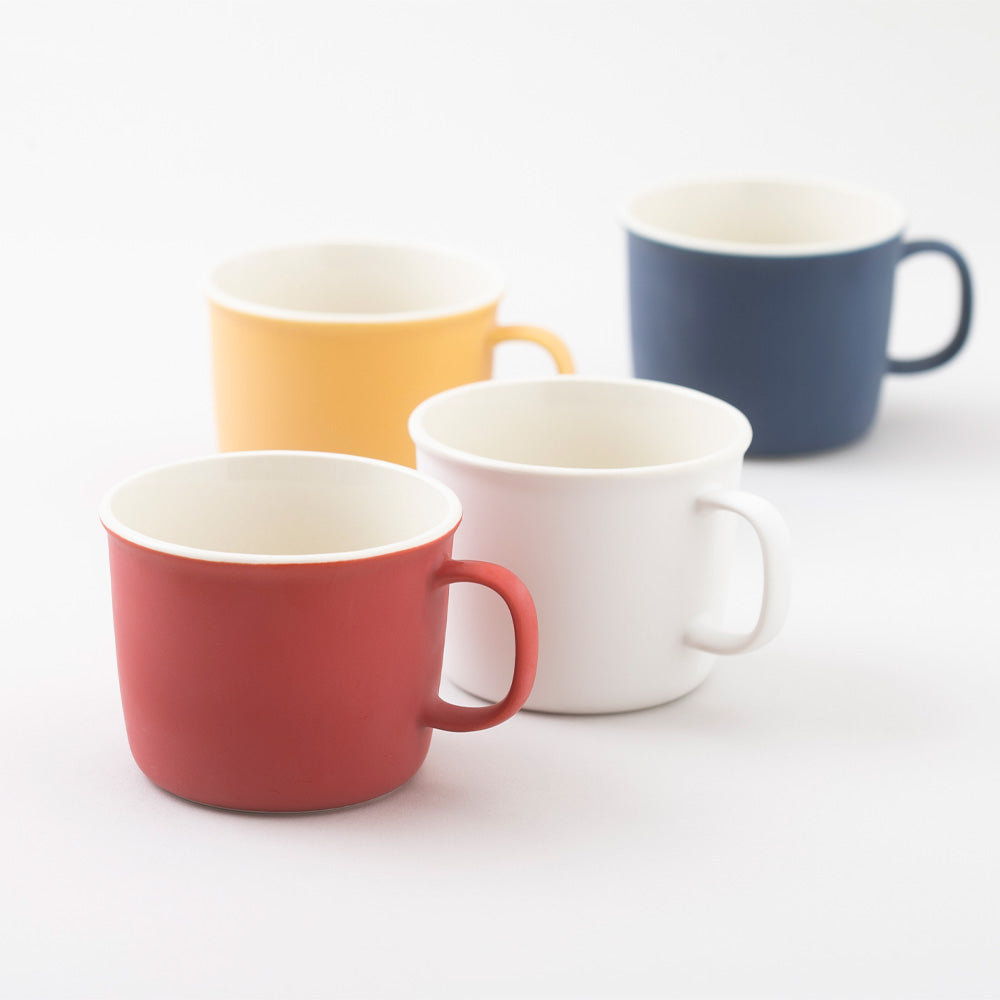 Our re-finished Moiscup, characterized by its texture and handcrafted in Gifu, Japan. The handle and exterior is given a sandblasted finish, giving it a very rare unique feel in pottery, and the shape of the handle is slightly angled for friendlier use. Using colors that have been handed down from ancient Japan, the porcelain has a beautiful, smooth interior enamel finish with a widened mouth. The premium packaging makes it a pleasant and wonderful gift.