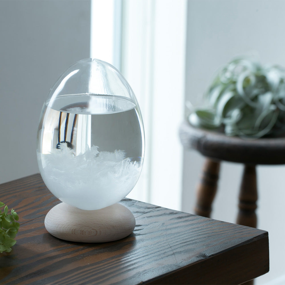 Storm glasses are weather forecasters that have been used by navigators as early as the 19th century. It is made by sealing camphor (camphor extract) and ethanol in a glass tube, and it was used by observing the crystals that occurred in response to climate change. It is also installed in the Nautilus that appears in Jules Verne's novel, "Twenty Thousand Leagues Under the Sea." With the development of science since then, it has become clear that there are still many mysteries about the crystallization phenomenon, and the details are still under study. Though you may not be able to use it as a predictor in modern times, you can enjoy the appearance of crystals that change day-by-day with our Tempo Drop Series just like the scenery changes with the seasons.